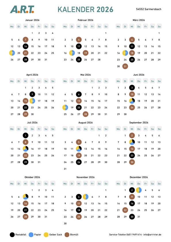Die aktuellen Abfalltermine, digitaler Abfallkalender oder eMail-Erinnerung finden Sie ->